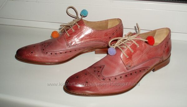 Новые кожаные фирменные дерби розового цвета. Внутренняя и внешняя поверхность - кожа. Так же оригинальная коробка. Фото сделаны мною лично, при дневном свете.Размер на туфлях указан 36, но в реальности большемерят на размер, полноценные 37, длина по стельки 24 см.