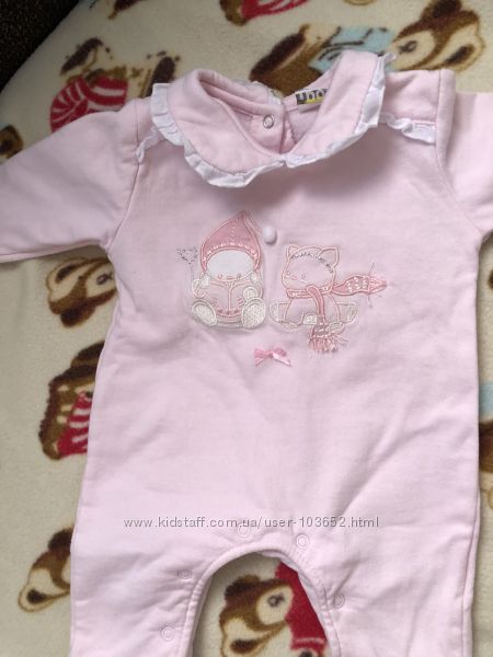 Размер 62 на бирке. Италия дорогая. Постиран,одет один раз. Красоты необыкновенной. Очень нарядный,внутри начесик -тепленький и очень нарядный. Малышка в нем как куколка)Платила за него больше 1000 грн.