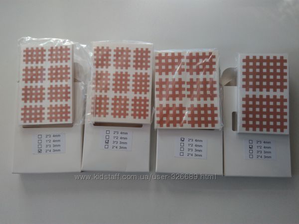 Цена в объявлении указана за упаковку Кросс-тейпов тип А (самый маленький), которая состоит из 20 листов, по 9 аппликации на листе, суммарно 180 аппликаций.
