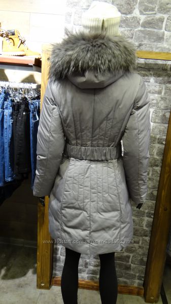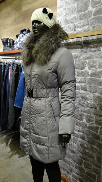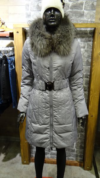 ICEbea приталений пуховик сірого кольору з шикарною натуральною опушкою-єнот.42 44 48 В наявності