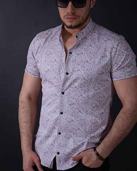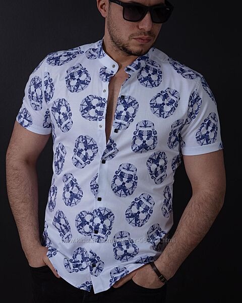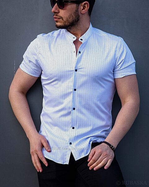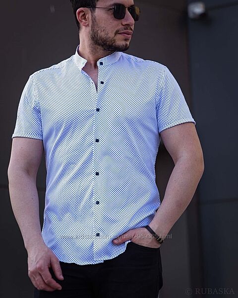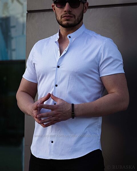 Мужские приталенные рубашки на кнопках с коротким рукавом ТМ RUBASKAРазмеры: S. M. L. XL. XXL