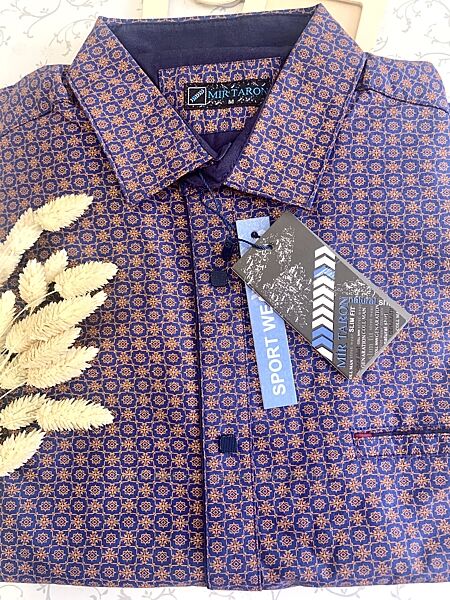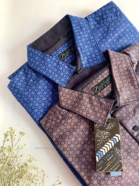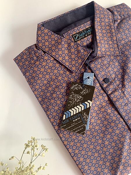 Рубашка с длинным рукавом, приталенного кроя, джинсового цвета с горчичным принтом от турецкого производителя Mir Taron. Имеет очень мягкую и приятную на ощупь ткань- стрейч-коттон, отделку синего цвета, карман-обманку, а также полностью застегивается на кнопках.Рубашка очень высокого качества, хорошо носится, красиво и дорого выглядит.