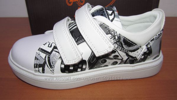 Оригинальные качественные туфли-кроссовки для мальчика или девочки весна/осень. Обувь данной фирмы отличается качеством, относительно недорогой ценой, приятный дизайном. Практичные, удобные, легкие. Продаются в индивидуальной фирменной коробочке. Подходят на любой подъем и полноту ножки.цвет: белый с черными картинками по бокам (карты, кубики игральные)