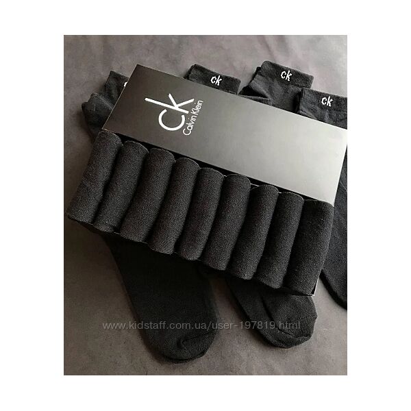 Набор 9 пар. Носки мужские короткие спортивные Calvin Klein в коробке.Турецкие носки. Мужские, подростковые, молодежные, спортивные носки.