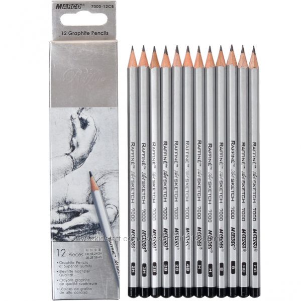 Подробное описание: Простые карандаши графитные Marco деревянные наборы для рисования