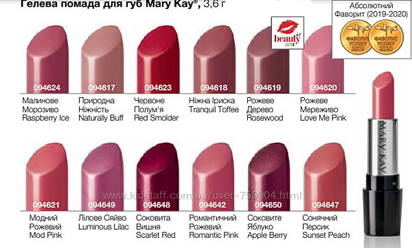 Исключительный цвет и покрытие - пигменты помады удерживают яркий цвет в течение всего дня. В основу Гелевой помады для губ Mary Kay входят прозрачные частицы, которые отражают свет и обеспечивают насыщенный цвет.
