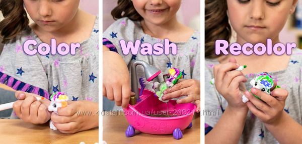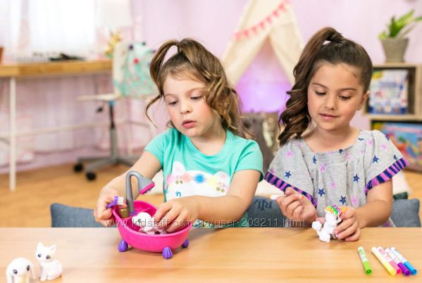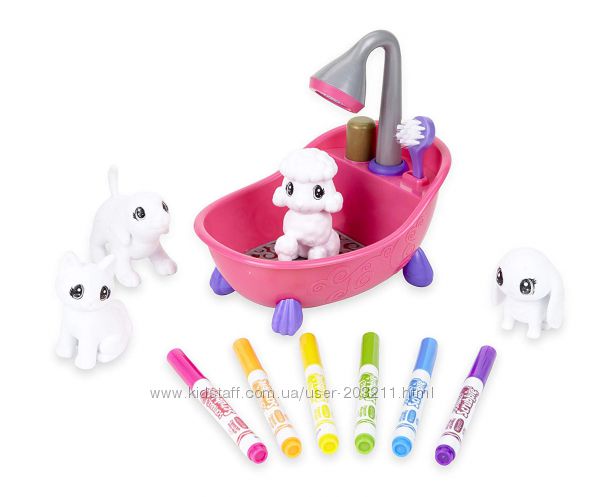 У наборі: 4 вихованці, щітка, 6 маркерів, що змиваються, і ванна.