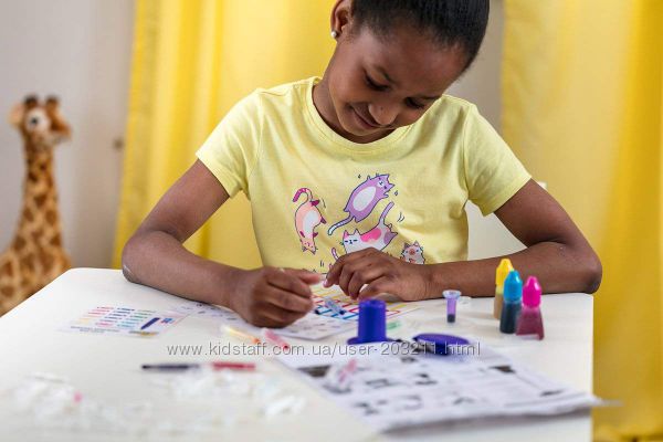 Крайола фабрика неоновых ароматных фломастеров. Это отличный набор для развития детей, ребенок сможет создать свои собственные мини маркеры. Поставляется со всеми инструментами, необходимыми для сборки 36 маркеров и инструкцией. Маркеры цепляются с помощью крышек-карабинов. Ребенок сможет сделать и без помощи взрослых. Сделав маркеры с радостью малыши будут ними рисовать. Экспериментируйте, создавайте и назовите свои собственные цвета и ароматы. Ребенок сможет развивать свою фантазию и воображение, а также развивать моторику рук. Идеальный подарок для подрастающего маленького художника.