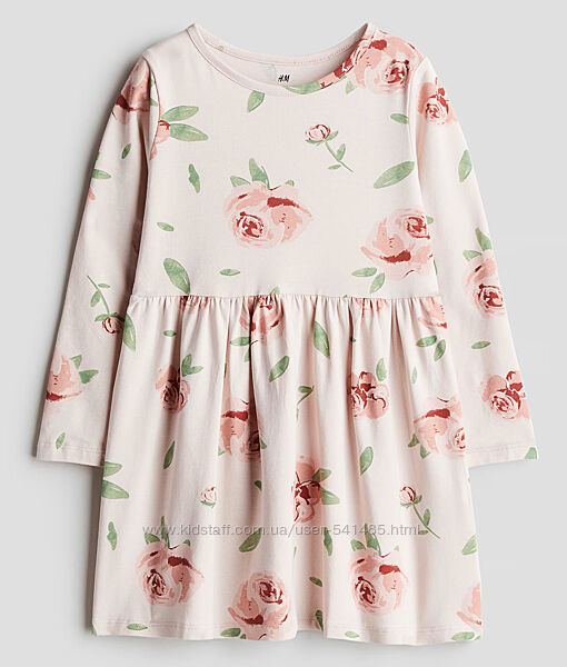 Сукня для дівчинки з довгими рукавами з бавовняного трикотажу з принтом. Відрізне по лінії талії, спідниця призібрана, розкльошена донизу. Із нової колекції провідного європейського бренду H&M.Розмір у наявності: 8-10 років, зріст 134-140 см