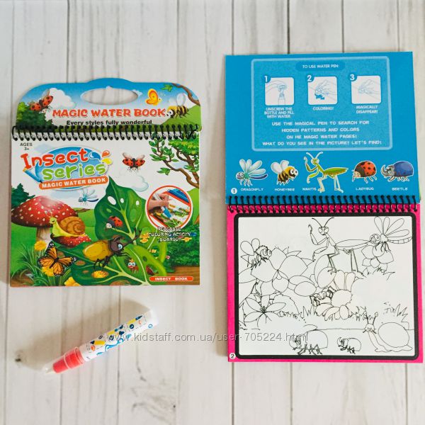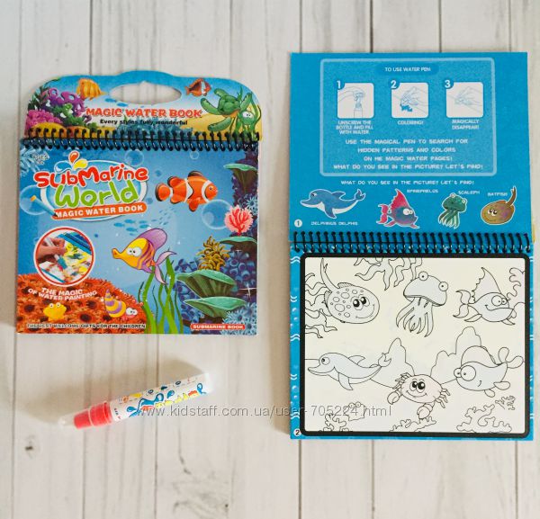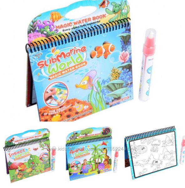 Очень качественные многоразовые водные раскраскиЭта увлекательная волшебная раскраска уникальна. С помощью маркера-кисточки, который нужно наполнить водой и затем провести по листку с картинками, проявляются цветные, яркие и насыщенные изображения. В книжке 4 разных рисунка. Через небольшой промежуток времени изображения высыхают и исчезают, и их снова можно раскрашивать.