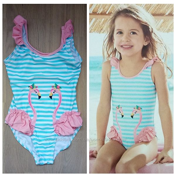 Купальник цельный ТМ Impidimpi, с объёмным принтом с фламинго, на плечах рюши, р.128. Цена: 525 грн.