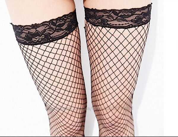 Соблазнительный комплект чулки сеточка и кружевной пояс - стринги