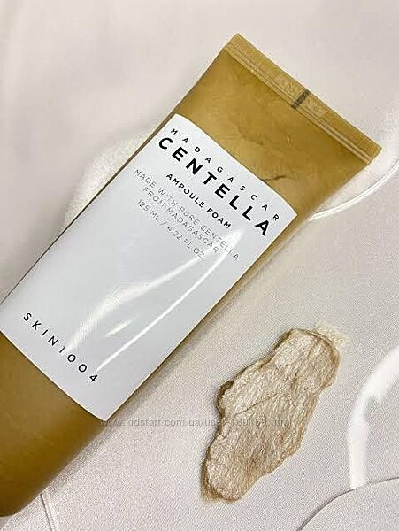 SKIN1004 - Madagascar Centella Ampoule Foam - ніжна пінка для щоденного очищення обличчя. Вона має кремову текстуру та бежево-перламутровий колір. Формула продукту збагачена екстрактом центелли азіатської. Цей компонент заспокоює подразнення та запалення, а також покращує рівень зволоження шкіри. Водночас екстракт какао зменшує шкідливий вплив вільних радикалів, а екстракт екліпти сприяє регенерації шкіри. Гіалуронат натрію зменшує трансепідермальну втрату води, тоді як лимонна кислота у складі надає освітлювальний ефект і м´яко відлущує епідерміс. Формула засобу має рН 5, вона ефективно та м´яко очищує шкіру від забруднень, надлишків себуму та залишків макіяжу, регенерує та заспокоює, має протизапальну дію. Пінка не пересушує і не стягує шкіру, а ще має інтенсивний, але не подразливий аромат.
