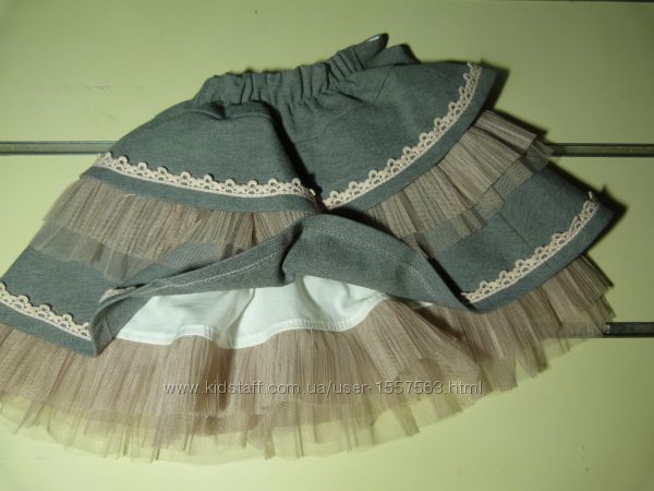 Юбка от польского бренда DAGAШикарное сочетание серой ткани с милым розовым кружевом