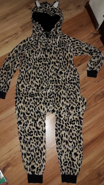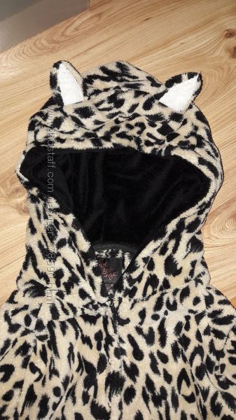 Домашний плюшевый костюм пижама с леапардовым принтом и манжетами .Костюм состоит из кофты с ушками и застегивается на кнопки . Брюки слегка вниз зауженные.Домашний костюм вам подарит тепло и уют дома. Костюм многофункциональный в нем можно ходить дома и когда холодно спать. Размер S Замеры . Длина без капюшона ,от плечей -152 см посадка спереди-60см ,ПОГ -53 см ,Рукав - 65 см Шаг - 85 см Состояние идеально-новое, без нюансов.