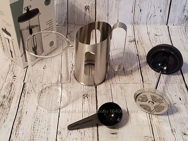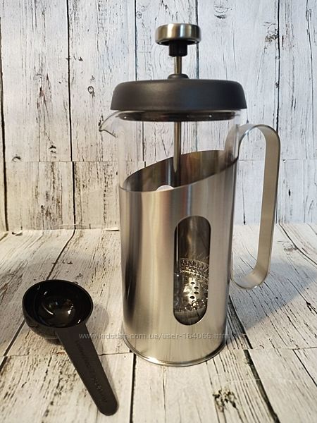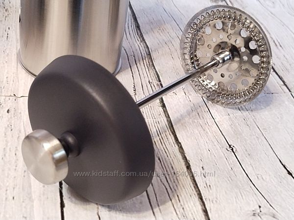Френч-прес призначений для заварювання чаю або кави. Колба з жароміцного і термостійкого скла витримує високу температуру. Корпус виготовлений з нержавіючої сталі і має поліровану поверхню. Рекомендується ручне миття.