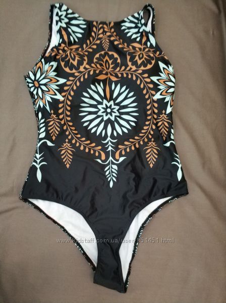 Закрытый сдельный купальник, стильный орнамент.Верх с поролоновыми вставками, полузакрытая спина, перед на подкладке, очень стильно смотрится, полномерный размер.