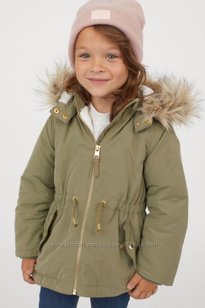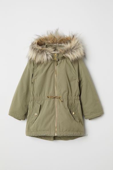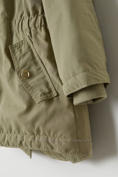 Утеплена парка з тканини з м´якою поверхнею з начісом кольору хакі.