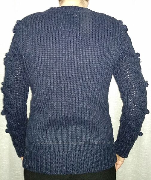 Замеры по запросу. Размер 10 (ориентируйтесь на фото рост 160см-50кг) Цвет темно-синий. Нить- микс с черной ниткой, если менее освещенной помещение, свитер смотрится совсем темный- почти черный. Состав: 60% акрил, 40% котон