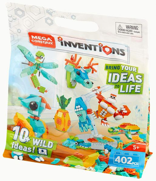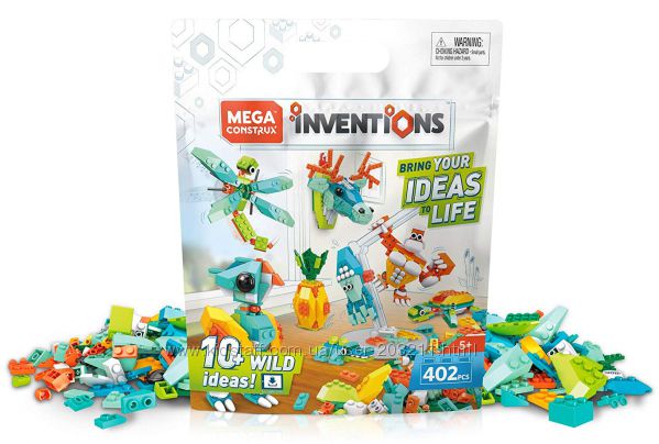 Только оригинальный товар!Совместимый с Лего конструктор 402 детали Mega Construx Inventions Wild Pack. Много интересных и разнообразных деталей!