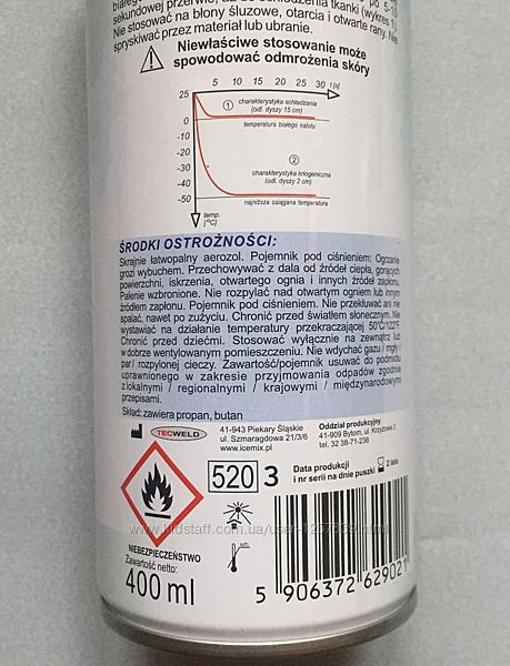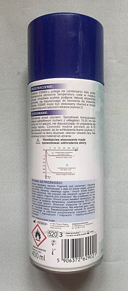 Содержимое баллона легко наносится на кожу на проблемную область и испаряется, эффективно охлаждая требуемый участок.