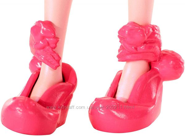У куколки длинные розовые волосы, голубые глазки, розовый носик и кроличьи усики. Юбочка в цветочек с меховой опушкой на подоле, голубой топ с нарисованными цветами и белый пластмассовый воротник «под мех». На ножках снимающиеся розовые туфли, а на спине белый хвостик. Твист нежно розового цвета с пушистым белым вихрем на макушке.