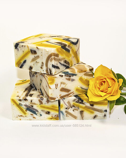 Состав: кокосова олія, оливкова олія, пальмова олія, шматочки мила всього асортименту магазину "Pinka", вода, каустична сода, кукурудзяний крохмаль, молочна кислота, аромат.🔹 Властивості: