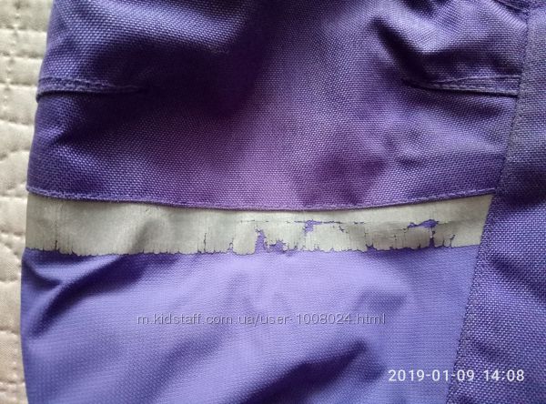 Характеристики: Ткань непродуваемая и водоотталкивающая, имеет грязеотталкиваюшие свойства. Застегивается на молнию и дополнительную планку с липучками. Воротник стойка, флисовый подворотничок. Капюшон пристегивается на кнопки. Рукав и низ штанин на резинке. Подкладка - полиэстер, дополнительно внутри спинка и грудь утеплены флисом. Область колен и попы уплотнена специальной плотной тканью для дополнительной защиты. Штанины с резинкой для фиксации на обувь. На талии внутренняя резинка с возможностью утяжки. Есть светоотражающие элементы. Температурный режим до -20С (с дополнительным слоем одежды). Флисовый человечек в подарок. Дефект фото 8.