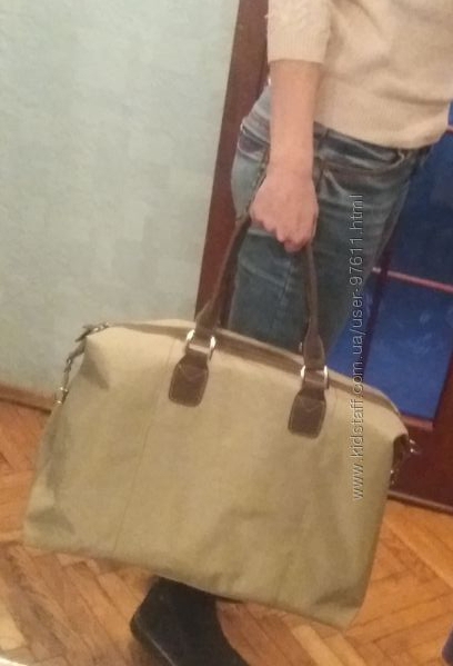 Містка і зручна дорожня сумка з непромокаючої плащовки.З однієї сторони є глибока кишеня на замку.