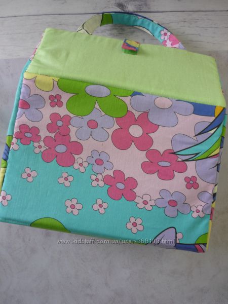 Собираясь в гости, в поликлинику, в длительную дорогу или в садик, Вам нужно брать несколько любимых игрушек Вашей девочки. Тут очень пригодится вот такая сумочка в виде домика. На ней могут быть изображены любимые персонажи, сумочка расстегивается и для игрушек внутри есть достаточно большое игровое поле.Можно пошить дополнительно постельку для куколки, декорировать домик внутри и снаружи, выбрать свой вариант застежки, размер и расцветку.