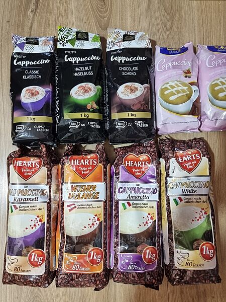 Капучино Hearts кг - 80 порций - 230 грн.Капучино Bardollini 1кг (классический, ореховый, шоколадный)