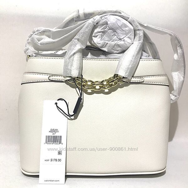 Сумка шкіряна Calvin Klein Evelyn Daytona Leather Satchel Bag White/Gold H0DYRZV1Увага! В наявності також колір White/Gold