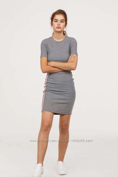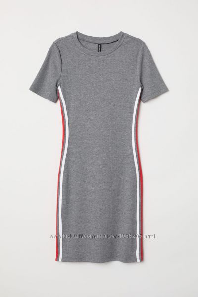 Модное трикотажное платье с контрастными полосками по бокам H&M. Облегает.Очень стройнит и моделирует красивую фигуру.