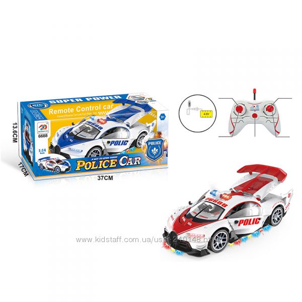 Машина на радиоупарвлении Полиция 6688-91A , аккумул.,свет Масштаб 1:14Двери и багажник машинки открываются.