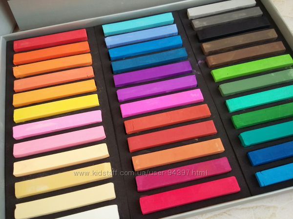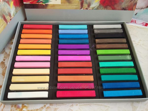 Пастель сухая квадратный грифель, не обернутый в бумагу. Имеет яркую палитру цветов.
