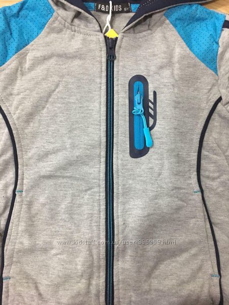 Спортивный костюм двойка с легким начесом для мальчиков от F&D. Модель практичная, удобная. Кофта с вшитым капюшоном, карманы на молнии, рукава и низ на манжетах. Брюки верх на резинке, низ-манжет, с карманами.Размерный ряд: 4-6-8Состав: cotton 65%, poliester 35%.