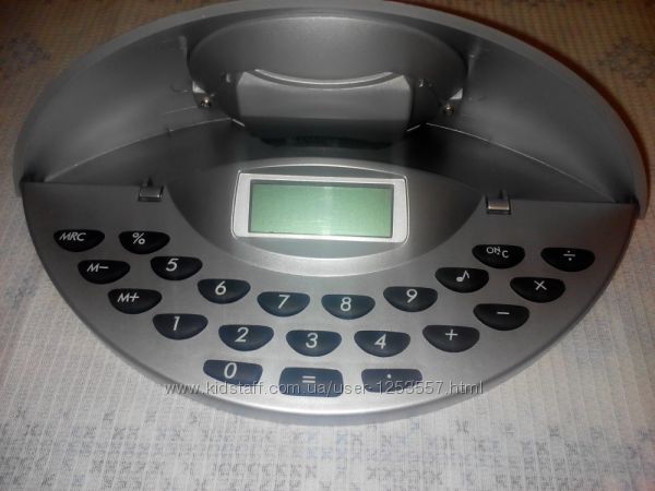 Настольные часы, новые на кварце, что обеспечивает точность хода, стрелки + секундная. Оригинальная конструкция с откидыванием для работы с калькулятором.Питание- пальчиковые элементы 1,5В.