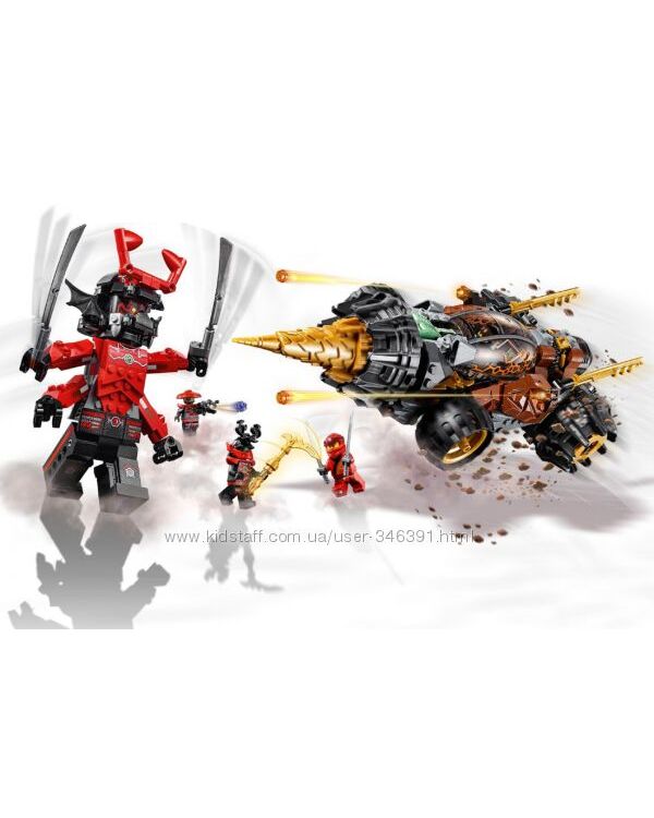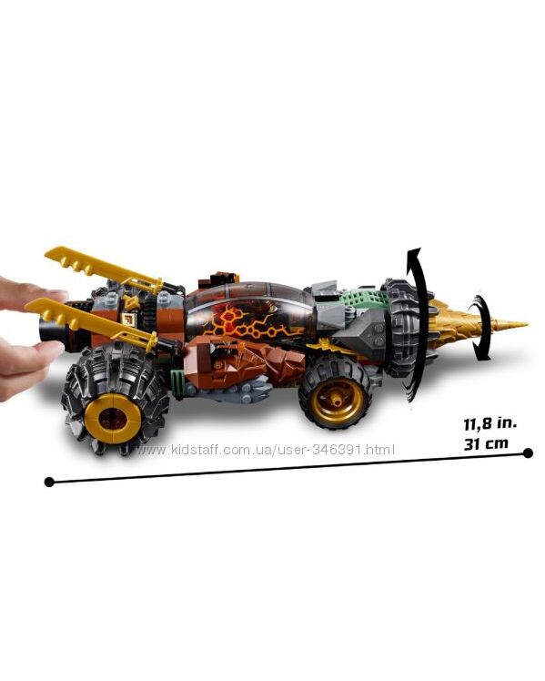 Вступи в бой с каменной армией за рулём Земляного бура Коула LEGO® NINJAGO®! При помощи крутой машины выполни гигантскую буровую петлю. Будь готов выдержать удар мечей гигантского воина каменной армии и атаковать с помощью пушек своей машины. Помоги Каю в битве с разведчиком и воином каменной армии. Можешь ли ты одержать победу в битве и вернуть себе украденное Золотое оружие Кола — Косу землетрясений?