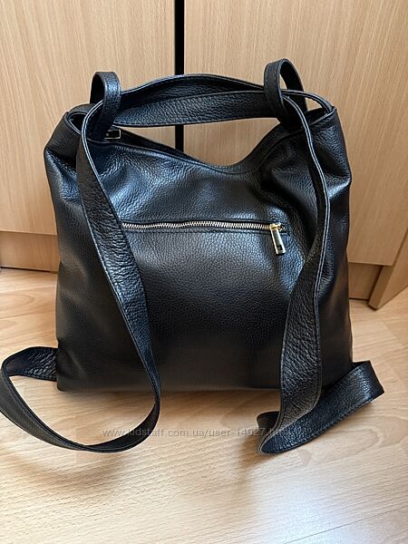 Итальянская кожаная шикарная сумка, можно носить как рюкзак