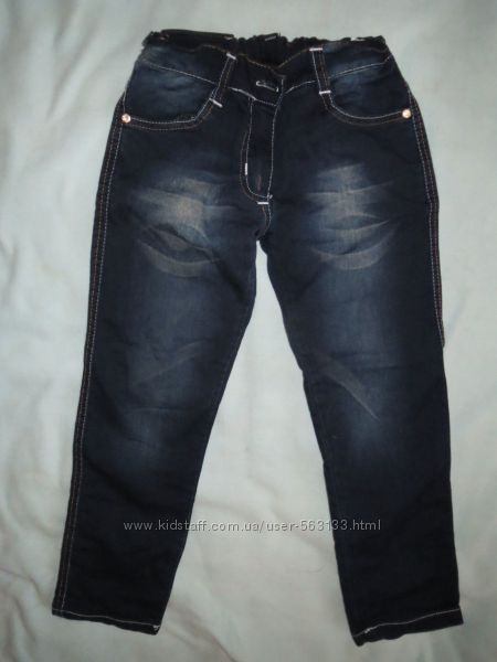 Джинсы в отличном состоянии на девочку 5-7лет.Длина по наружному шву 68см