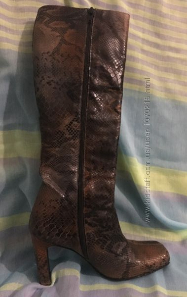 Качественные очень удобные сапоги из мягкой натуральной ЗМЕИНОЙ кожи,состояние- идеальное,- сапоги 2 раза обуты,голенище вверху- 17,5см,