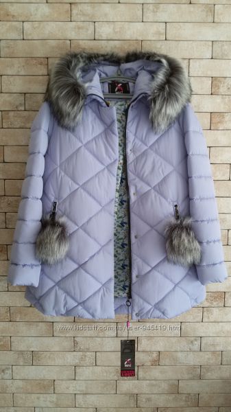 Качественная стеганная зимняя куртка украинского бренда X-Woyz. Очень теплая. Застегивается на молнию, прикрытую планкой на кнопках. Капюшон по краю оформлен искусственным мехом, при желании можно снять. Боковые карманы на молнии украшены съёмными меховыми помпонами. Размер 48.Материал: Плащевая Memory "Dewspo"