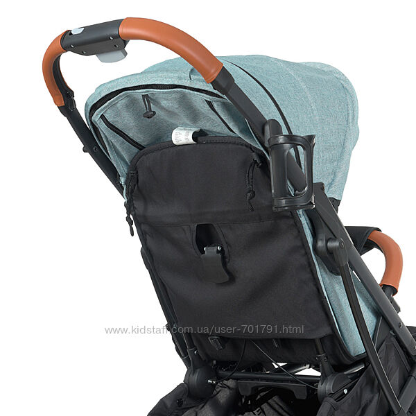 Заботливым родителям понравится встроенная подножка, которая удлинит спальное место и она же служит ручкой, за которую можно катить коляску, как чемоданчик, в сложенном состоянии.