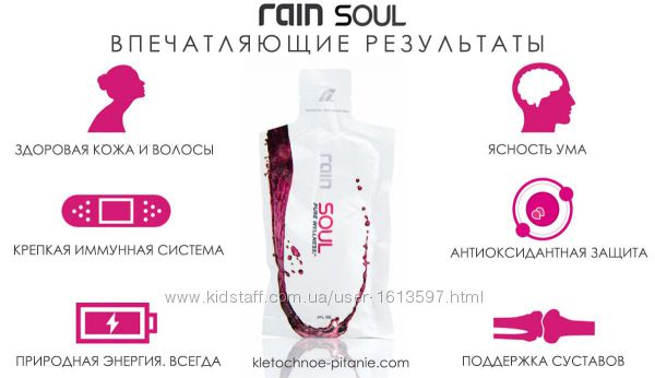 Rain Soul - продукт, который наполняет наши клетки полезными компонентами и замедляет старение. В 1 пакетике суточная норма витамин, минералов, омеги 3, 6, 9. Антиоксидант (число ORAC составляет 5238)Противовоспалительное (в 281 раз сильнее аспирина)