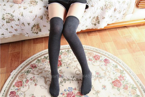 Подробное описание: Гольфы за колено высокие носки чулки черные белые серые хлопок