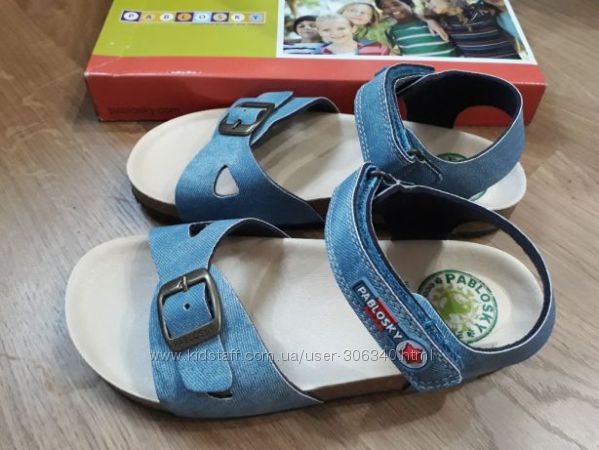 Босоножки Pablosky (Испания) р. 34 евро, стелька на фото, лента между загибами Подошва пробковая, отлично смягчает удары и снимает напряжение.Анатомическая поверхность - для правильного формирования стопы.