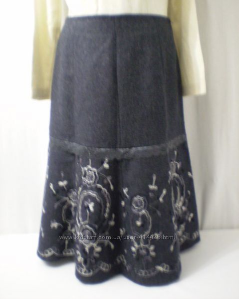 Теплющая мягкая роскошная юбка с вышивкой. шерсть.