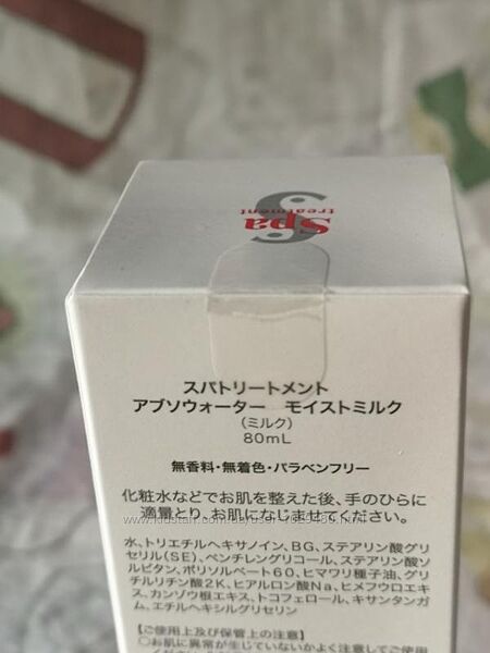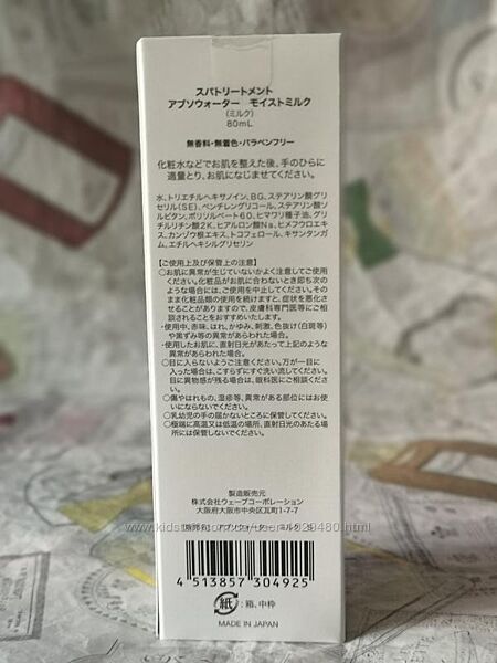 Молочко Spa Treatment Abso Water Moist Milk содержит щелочную электролизованную ионизированную воду, которая смягчает и разглаживает кожу, растительные компоненты , насыщающие ткани влагой и питательными веществами , а также растительные масла , которые запечатывают влагу внутри клеток.