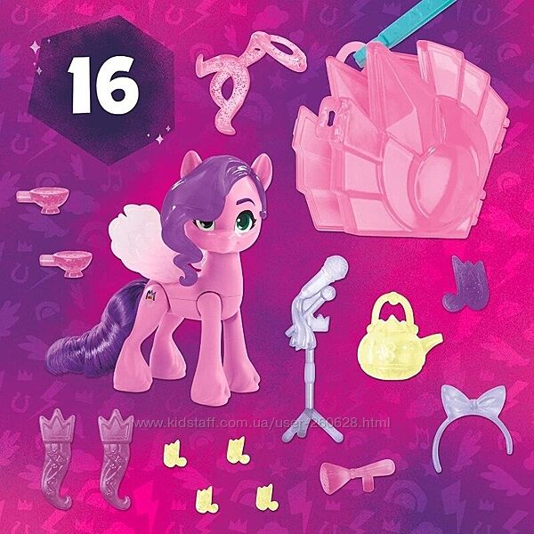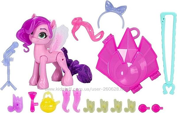 Принцеса Піпп Пелюстка - рожева поп-зірка Пегас рожевого кольору з фіолетовим волоссям, натхненна шоу My Little Pony: Make Your Mark. Постачається з підвіскою-музичною нотою Cutie Mark та аксесуарами для волосся!