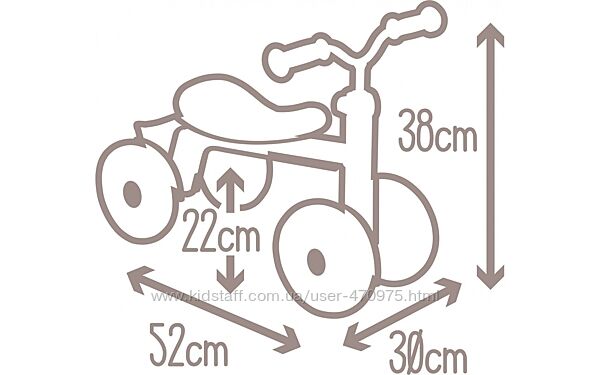 4-х колісний біговел в пудровому кольоріНадміцна металева рамаЕргономічне сидіння з покриттям проти сковзанняКермо з обмеженим поворотом та покриттям проти сковзання рукКолеса з покриттям EVA, безшумні та стійкі до зношуванняПротектор на колесах для надійного зчеплення з дорогоюРучка для транспортування, розташована під сидіннямКошик для іграшокРозвиває моторику дитиниВік: 12 місРозмір: 52 х 30 х 38 смSmoby - це відомий французький виробник дитячих іграшок, який вже багато років радує малечу якісними та безпечними товари. Всі продукти відповідають міжнародним стандартам безпеки, тому ви можете бути впевнені в правильному виборі.